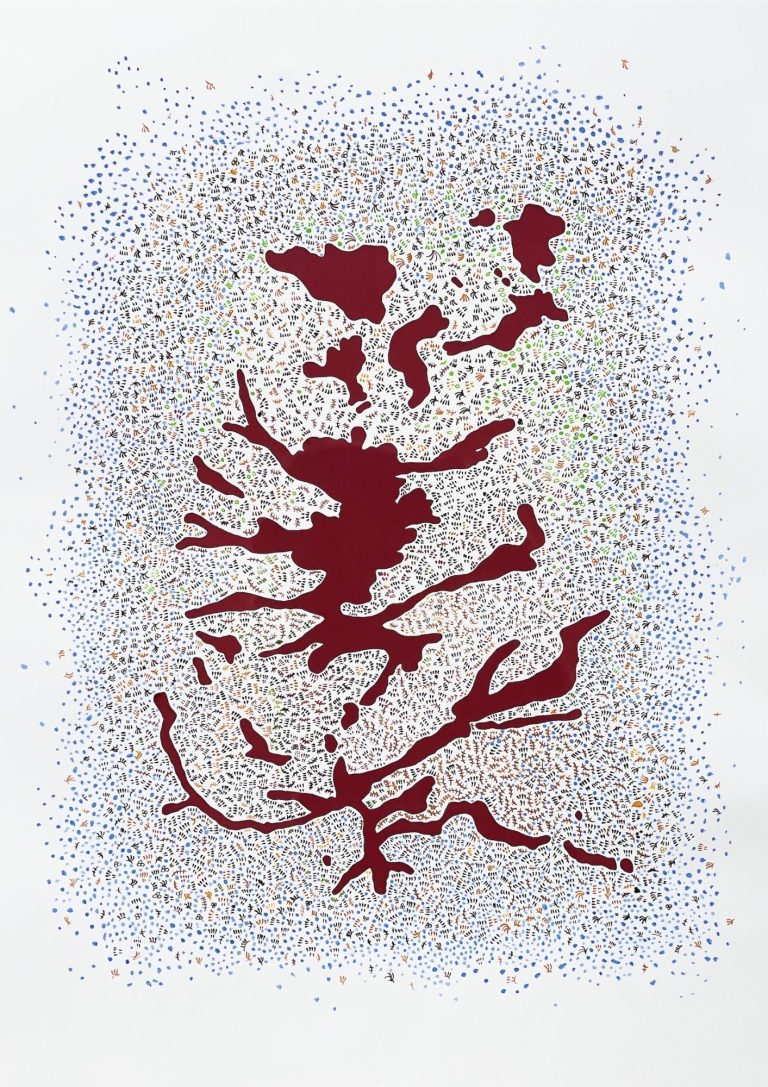 Inspired by the influence of ice & water on our enviroment, she combines different print media with hand-drawn elements to explore notions of continuity & transience.